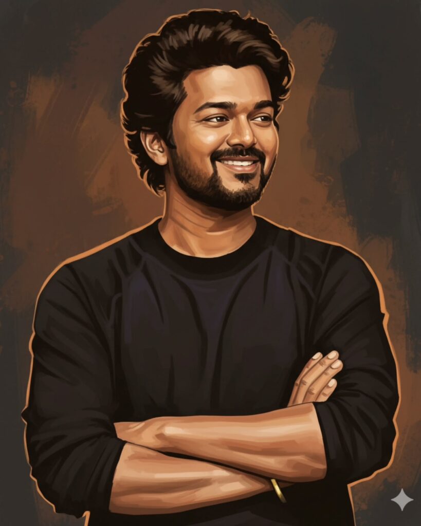 Composition: close-up headshot, slightly turned angle, upper chest visible, confident expression.